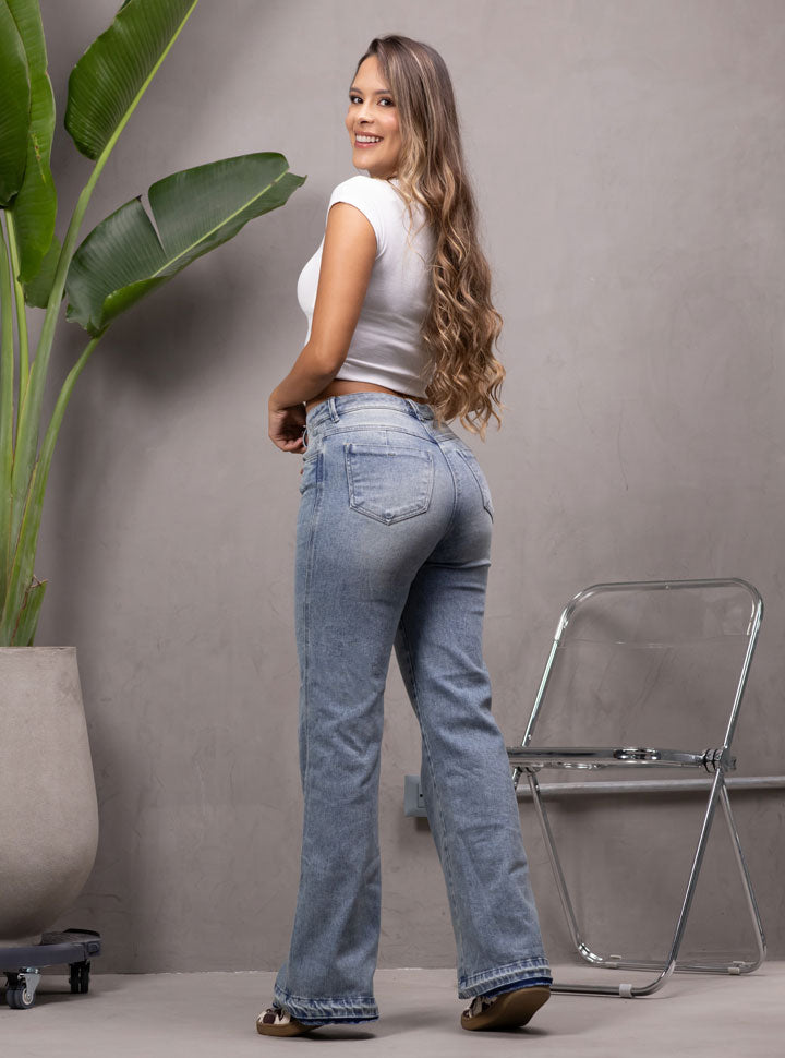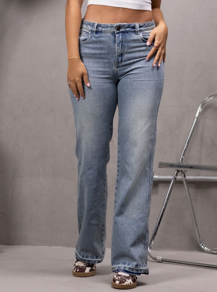 Jean straight fit de tiro alto en tono stone medio, diseñado para estilizar la silueta con un ajuste cómodo y favorecedor. Su corte recto alarga visualmente las piernas, mientras el detalle de bota desflecada añade un toque moderno y casual. Confeccionado en denim con efecto de realce, resalta naturalmente tu figura sin perder confort