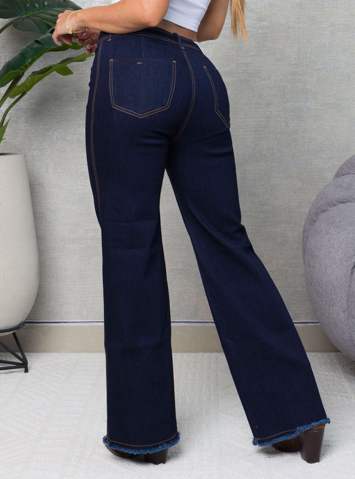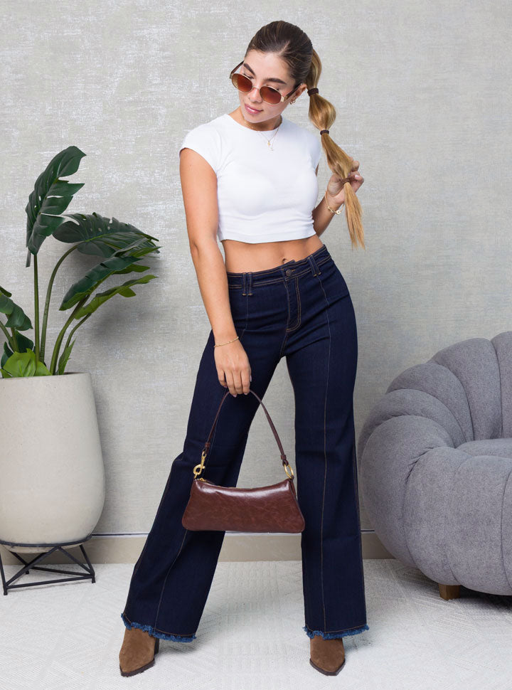 Destaca por su vena delantera que afina visualmente las piernas y su bota desflecada, que aporta un toque moderno