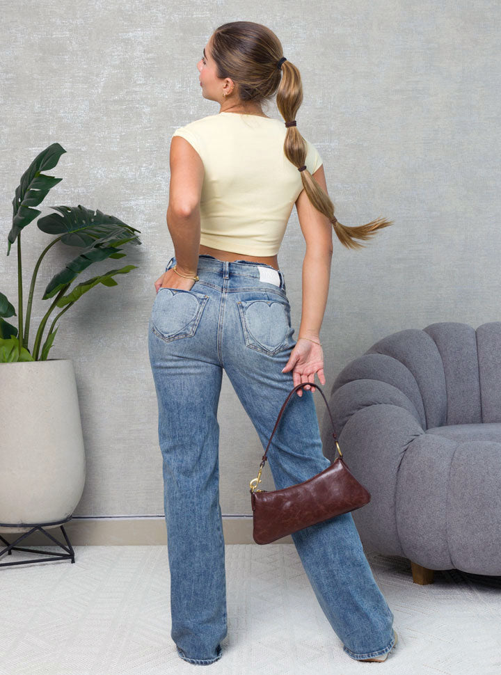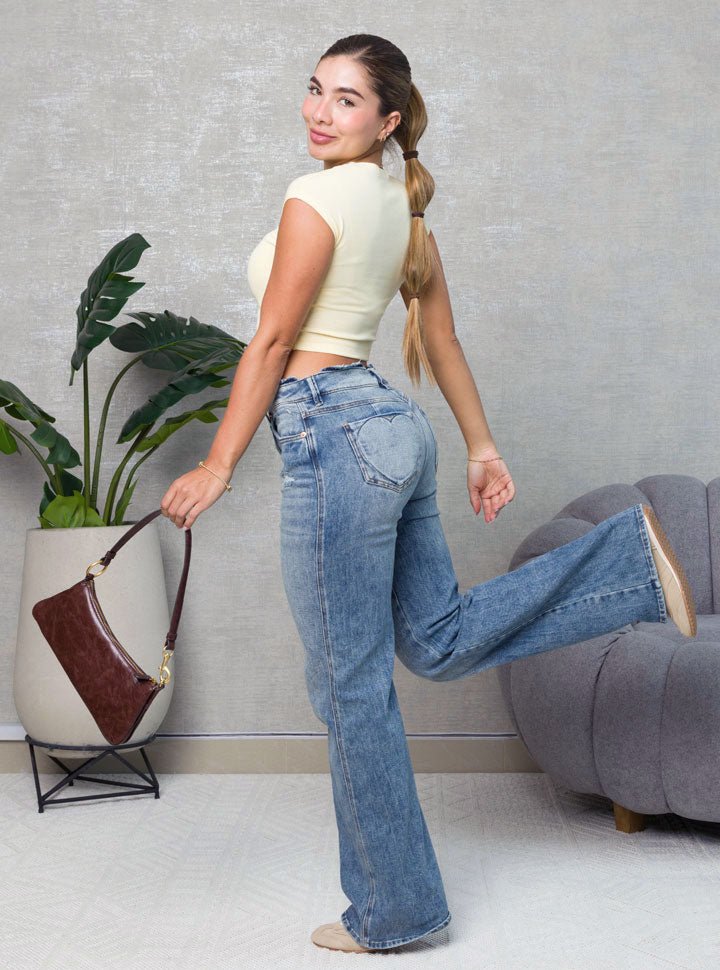 ✨ Jean de tiro medio con un fit cómodo y versátil. Su pretina desflecada le da un toque trendy y auténtico, mientras que los bolsillos traseros en forma de corazón aportan un detalle único y femenino. La bota recta estiliza tu figura y combina con cualquier tipo de calzado. Elaborado en denim resistente, es esa prenda atemporal que no puede faltar en tu clóset.