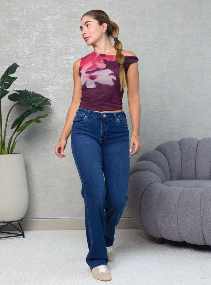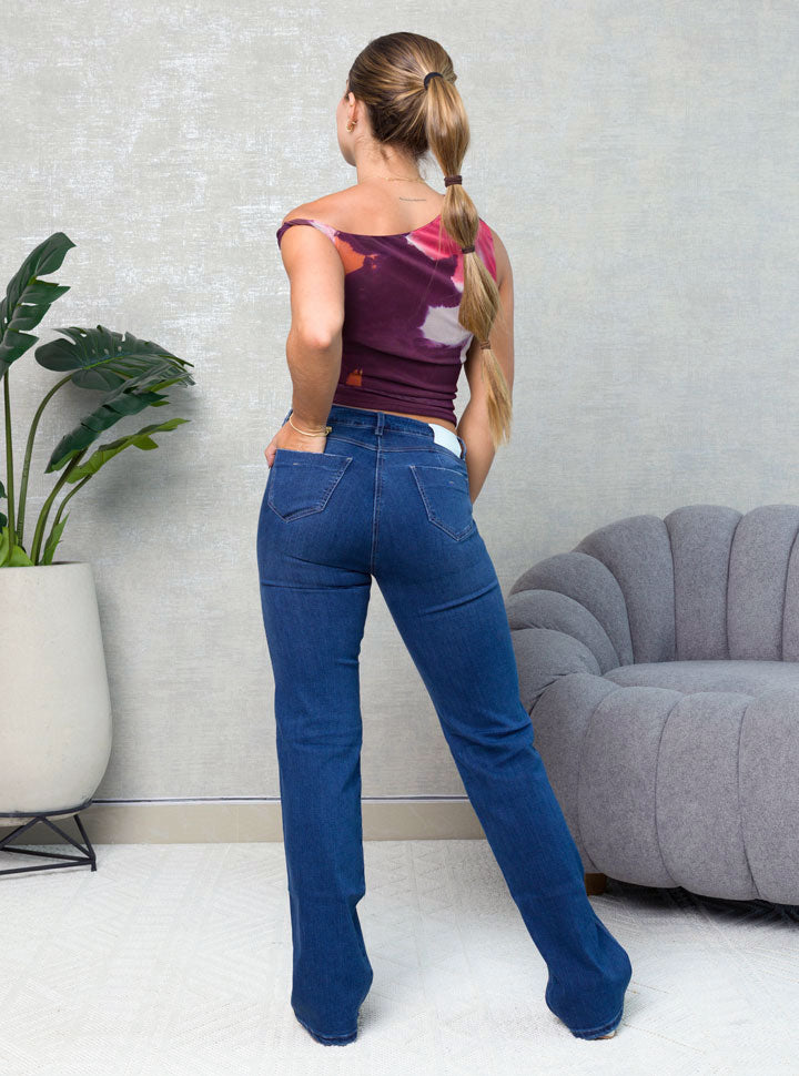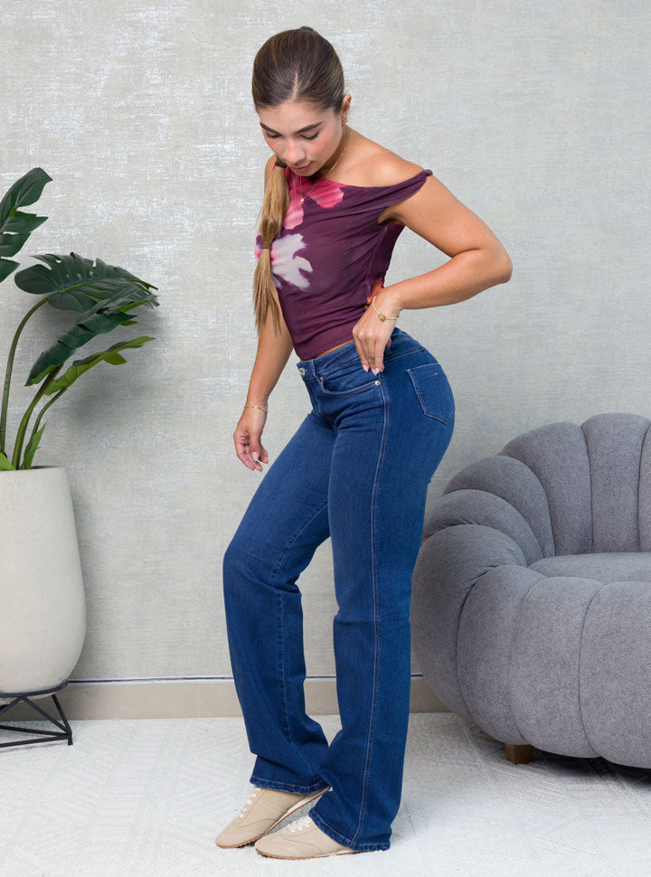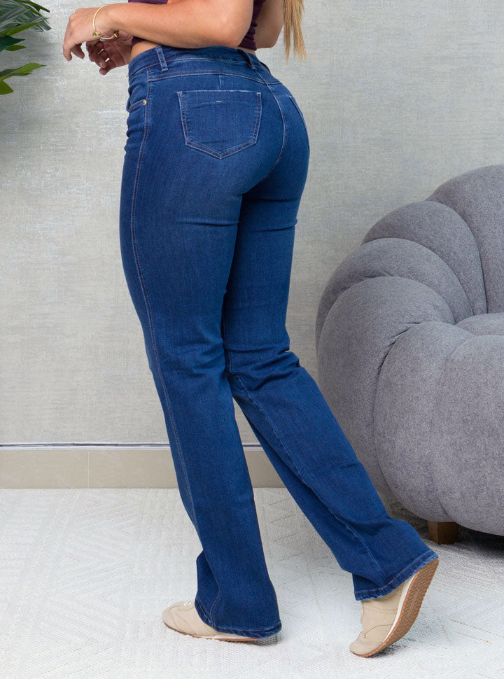Un básico que nunca falla. Este jean en tono stone oscuro tiene una silueta bota campana que estiliza al instante. Confeccionado en tela stretch para una horma espectacular, cuenta con pretina delgada y cuatro bolsillos funcionales. Cómodo, versátil y perfecto para cualquier ocasión, especialmente si buscas un fit que realce tu figura y combine con todo.