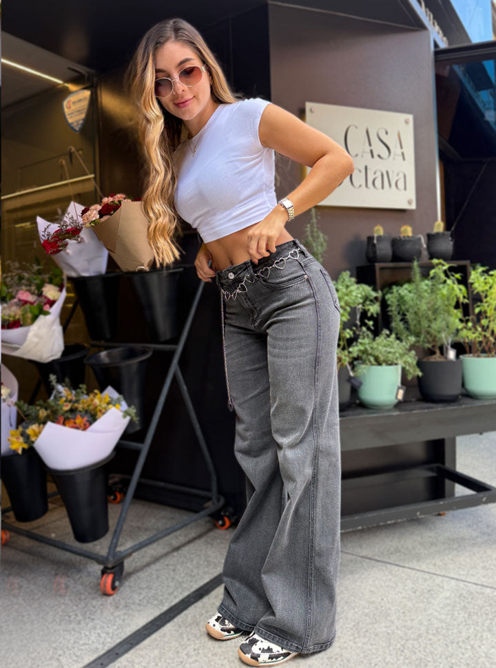 jean negro humo bota recta con cinturón