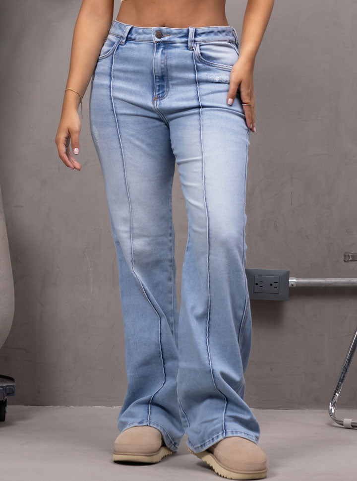 Jean straight fit de tiro medio alto, confeccionado en denim licrado stone claro que brinda comodidad y libertad de movimiento. Su diseño con bota recta alarga la silueta y lo convierte en un clásico que nunca falla. Incluye costuras delanteras que estilizan, desgaste sutil en el frente y bolsillos posteriores funcionales que realzan de manera natural.